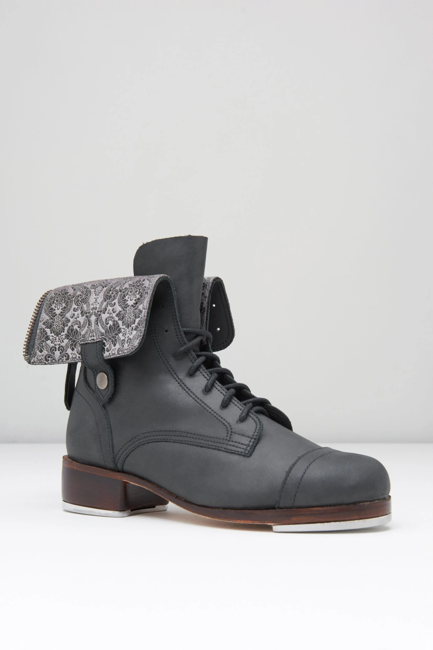 Our Adult City Tap Boots are both versatile and technical, with no compromise on performance or style. Tested and trialled by superstar tap duo Chloe & Maud, these boots have multiple styling options to enhance your performance while providing industry leading tone and resonance. The key feature of this boot is the zipper rear which can be worn both up or down, in addition to its carefully placed elastic which secures the boot in hugging the arch of the foot, while providing full ankle flexibility. The Tap boots plush velour lining provides you with comfort whilst dancing, as well as adjustable laces which ensure that the tap boot remains secure on the foot.