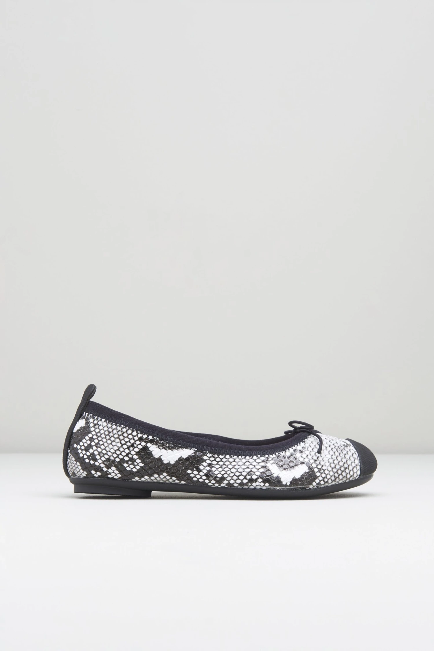 Our Girls Astra Ballet Flats feature a classic two tone design with a sleek and sophisticated python print with a semi-gloss finish. Crafted for all day comfort, our Ballet Flats are the perfect shoe for on the go with its cushioned teardrop heel and elasticated drawstring allowing for a customisable fit.