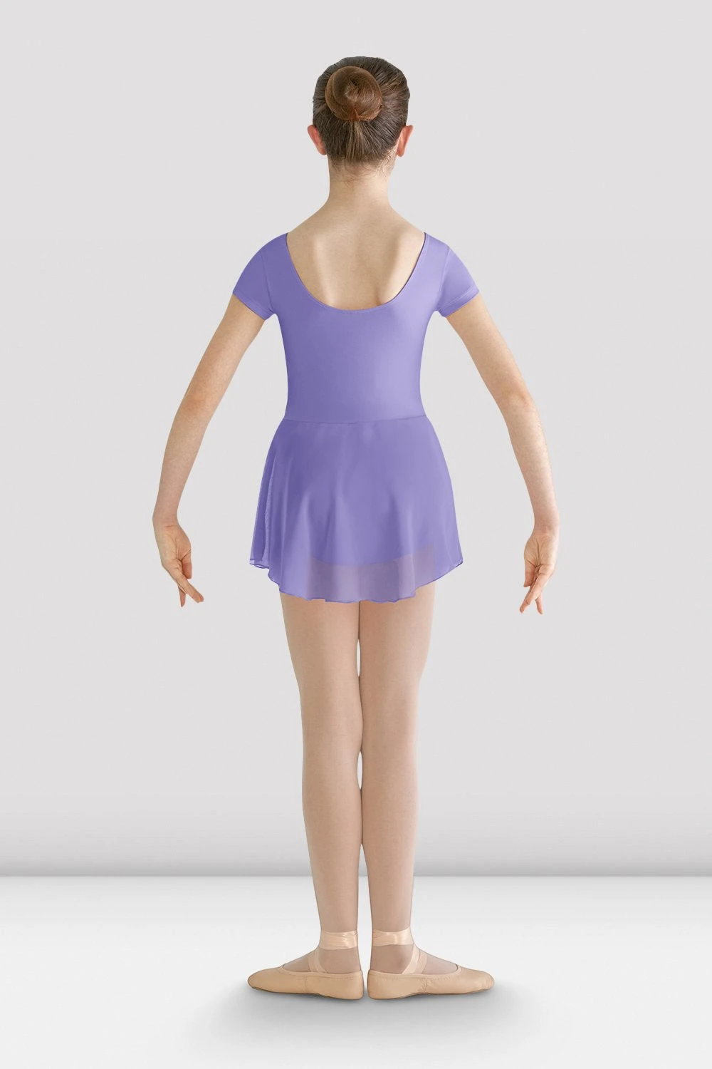 Perfect for the studio and the stage! This classic short sleeve dress features a scoop front and back with an attached Georgette skirt in the same hue that falls gracefully from the hip.