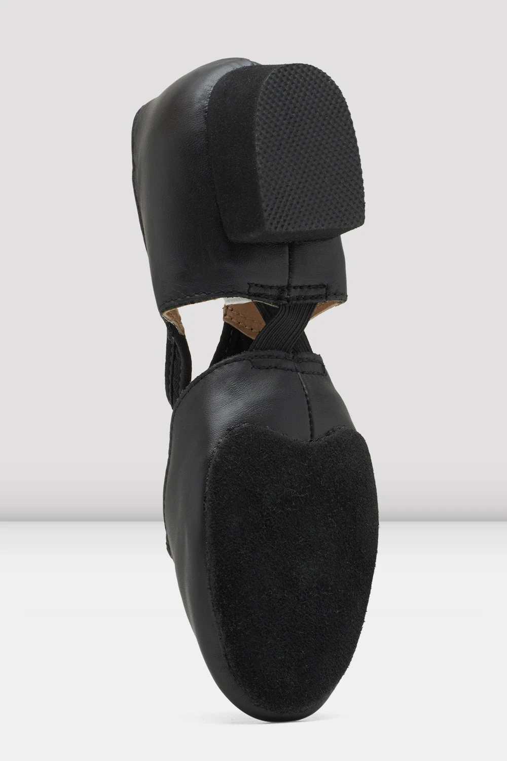Comfortable and supportive leather teaching shoe with neoprene T-strap, 1 inch heel and suede outsole. Combines unbeatable support with the flexibility of a ballet shoe. Altered instep line reduces strain on the Achilles tendon and calf.